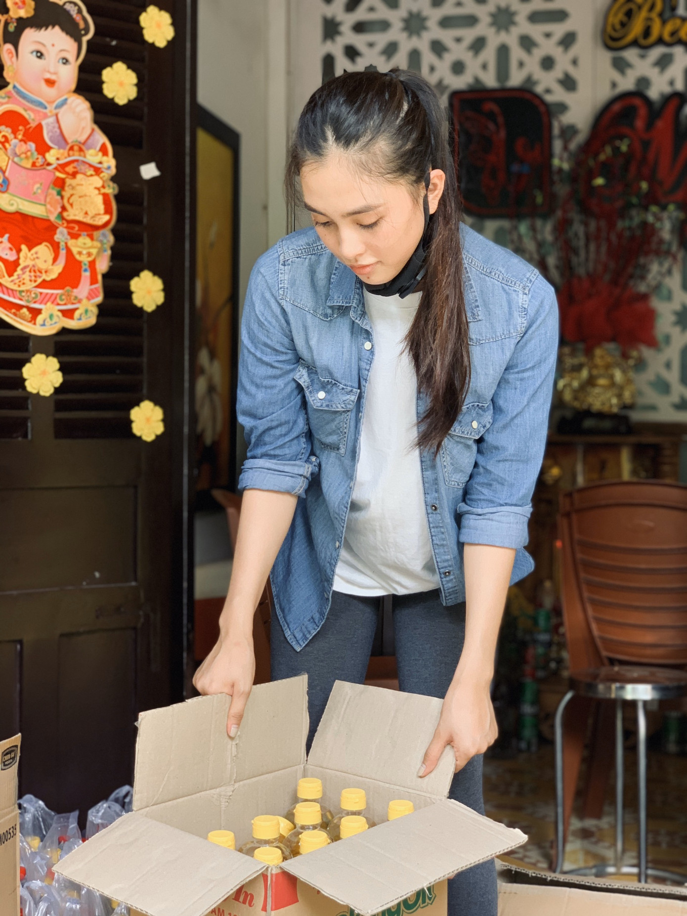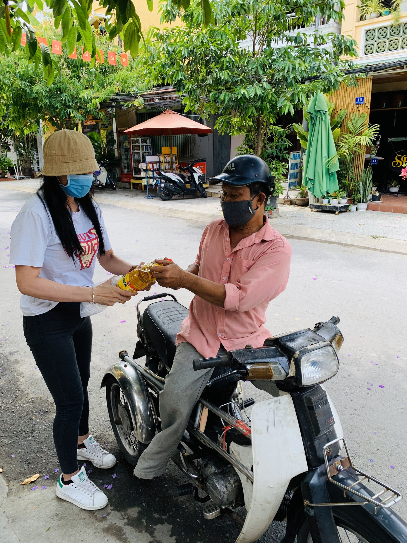 Trước đó khi dịch vừa bùng phát, cô cùng từng Hội Liên hiệp Thanh niên Việt Nam TPHCM tham gia ngày hội hiến máu và trao quà cho bệnh viện dã chiến cùng nhiều mái ấm tình thương khác.