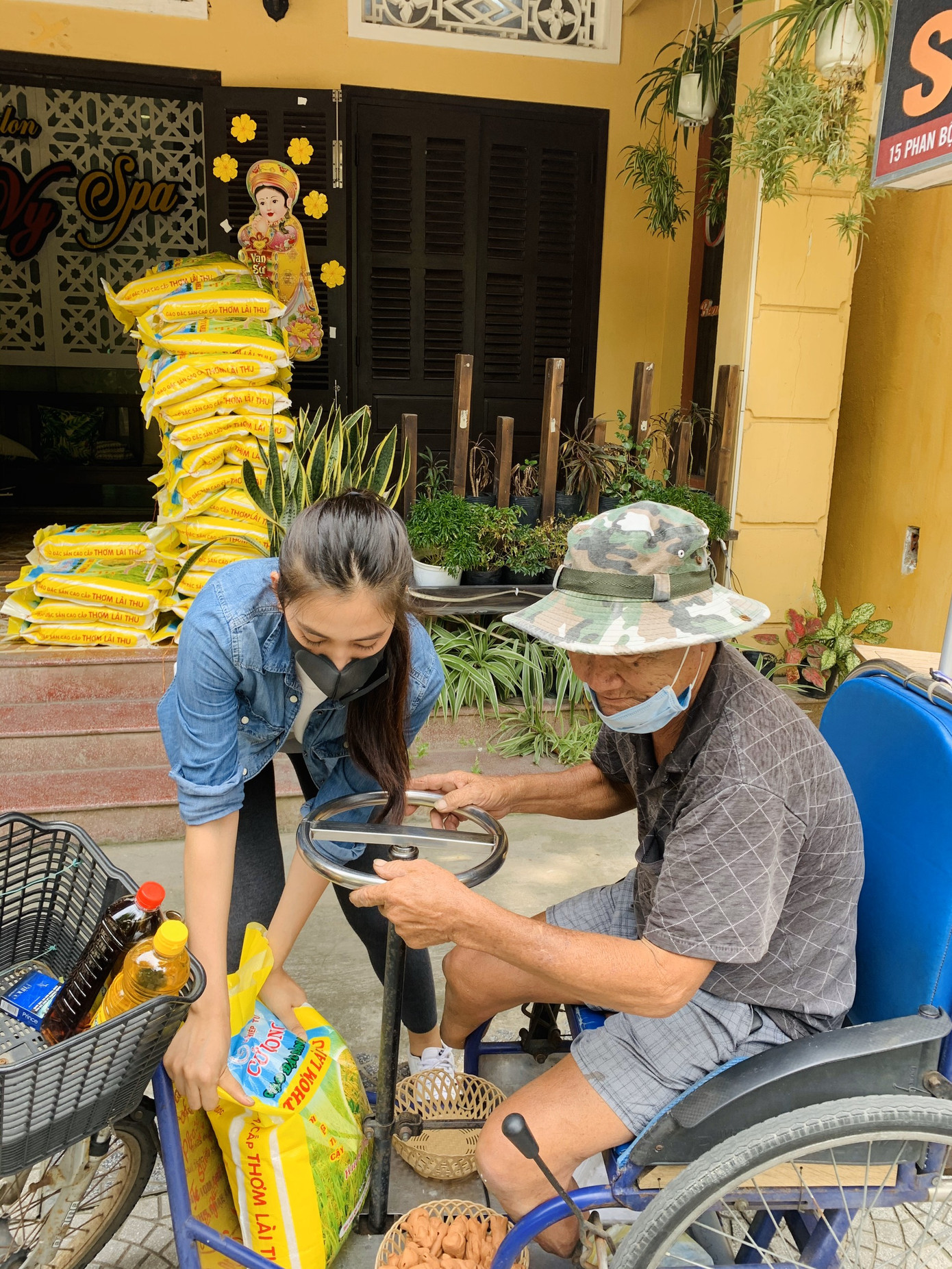 Nhân dịp trở về Hội An, Tiểu Vy đã cùng mẹ chuẩn bị quà cho 100 người dân bán hàng rong, người khuyết tật và người có hoàn cảnh đặc biệt khó khăn khác trên địa bàn thành phố. Mỗi phần gồm có 10kg gạo, 1 chai dầu ăn và 1 chai nước mắm với tổng giá trị là 20 triệu đồng.