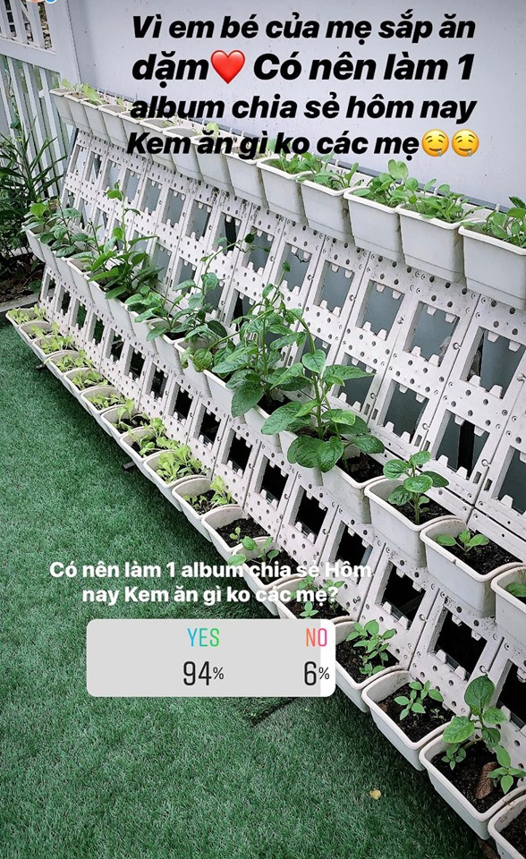 Á hậu Tú Anh trồng cả một vườn rau mini tại nhà để phục vụ cho việc ăn dặm của quý tử.