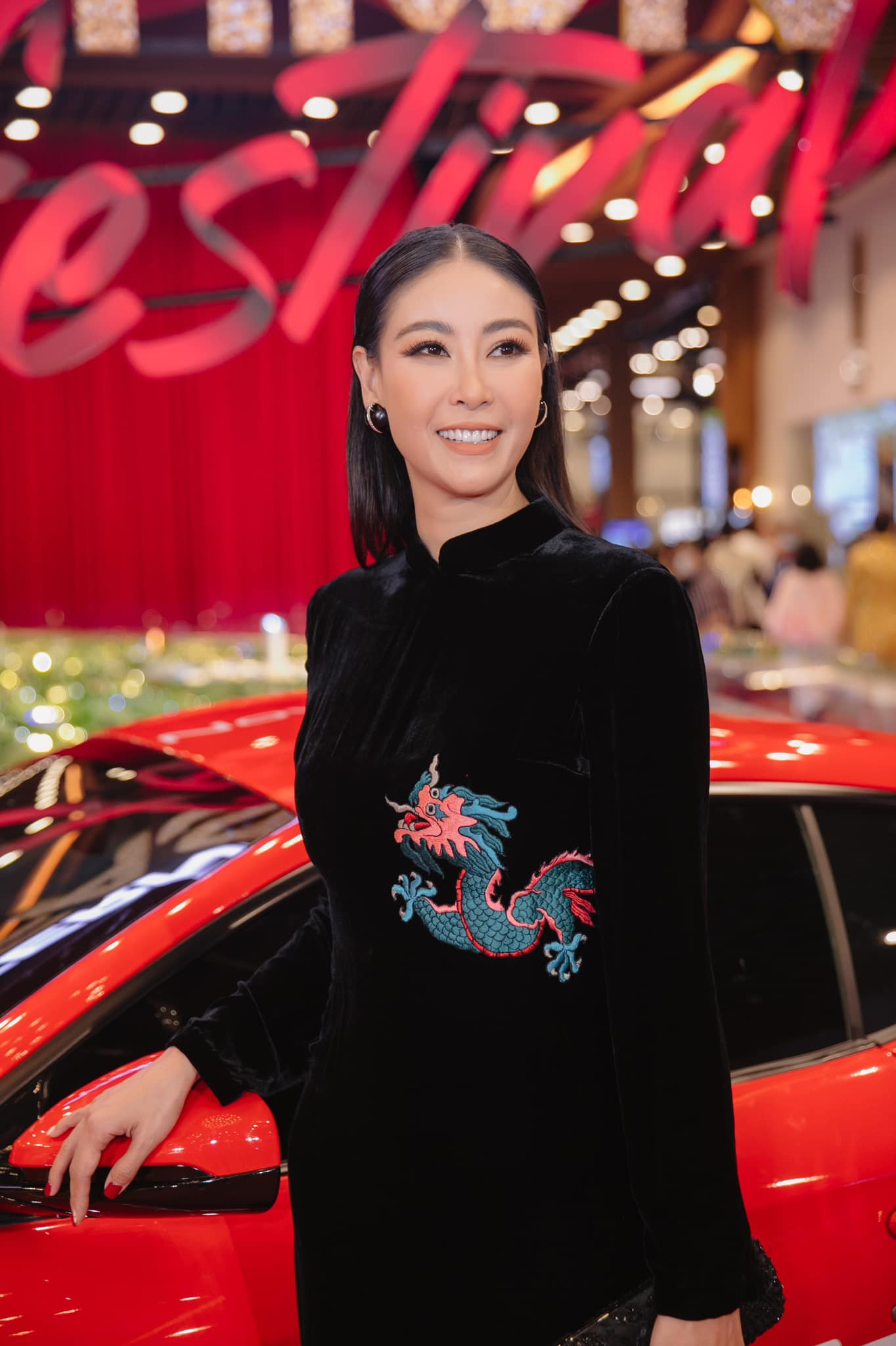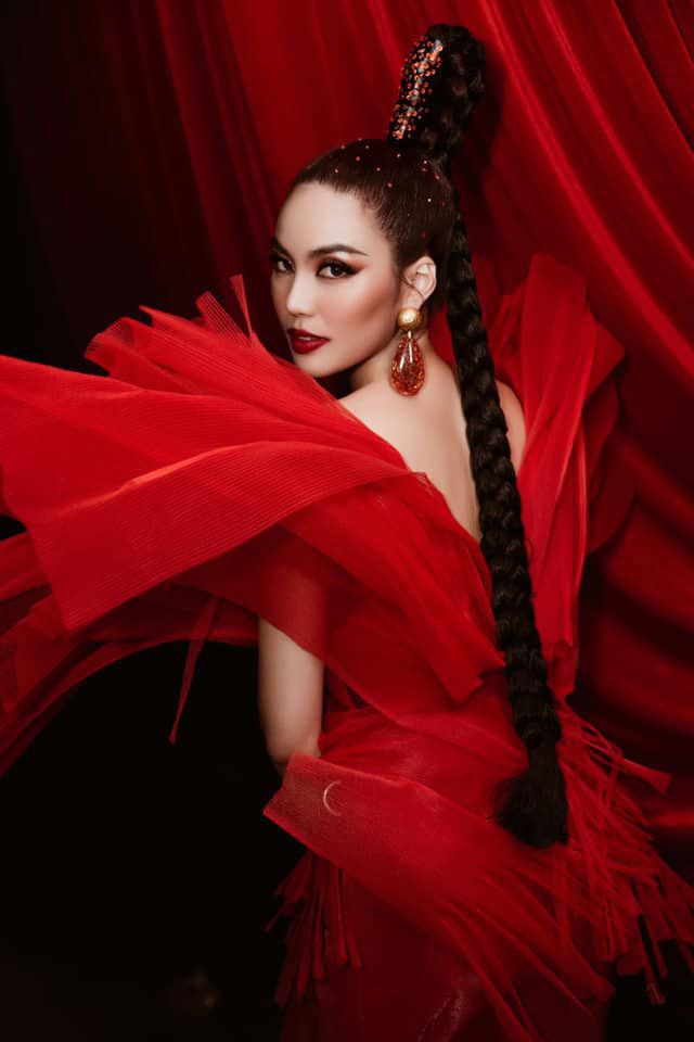 Hoa hậu Tiểu Vy khoe sắc trong bộ trang phục đỏ rực mang màu sắc lễ hội trong một sự kiện mới đây.