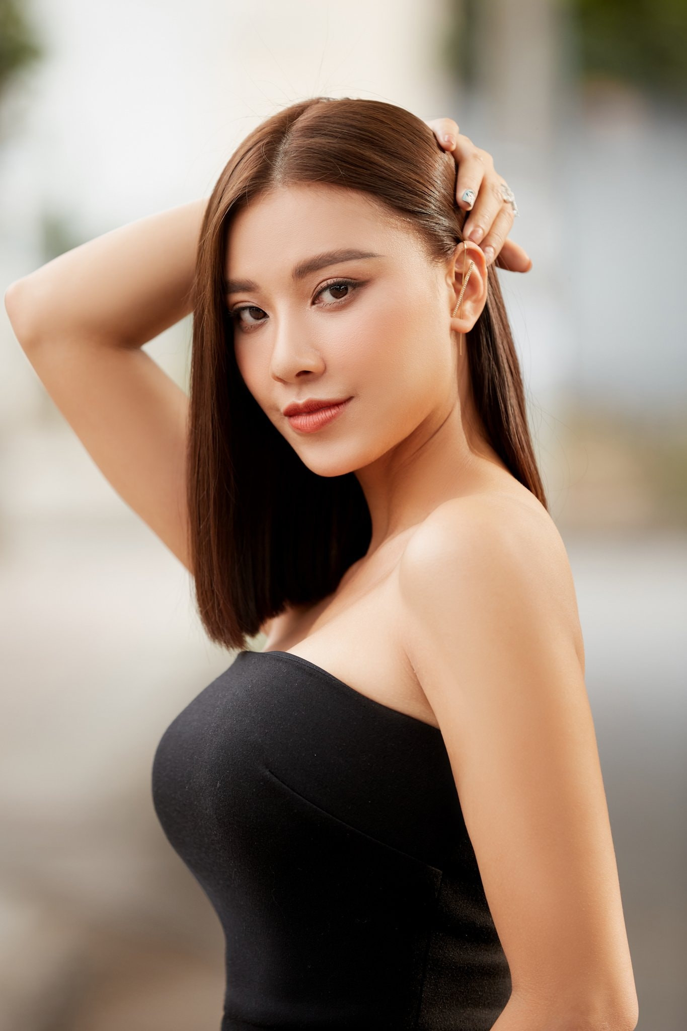 Á hậu Kim Duyên diện váy đen khoe đôi chân dài quyến rũ.