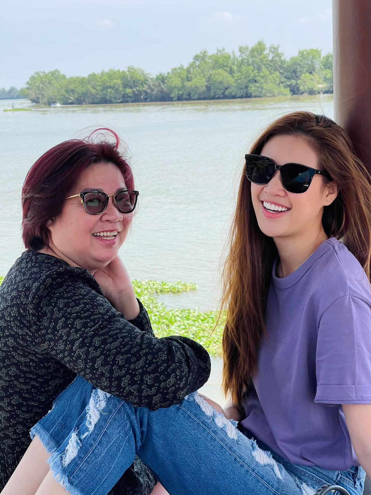 Hoa hậu Khánh Vân tận hưởng ngày yên bình bên mẹ.