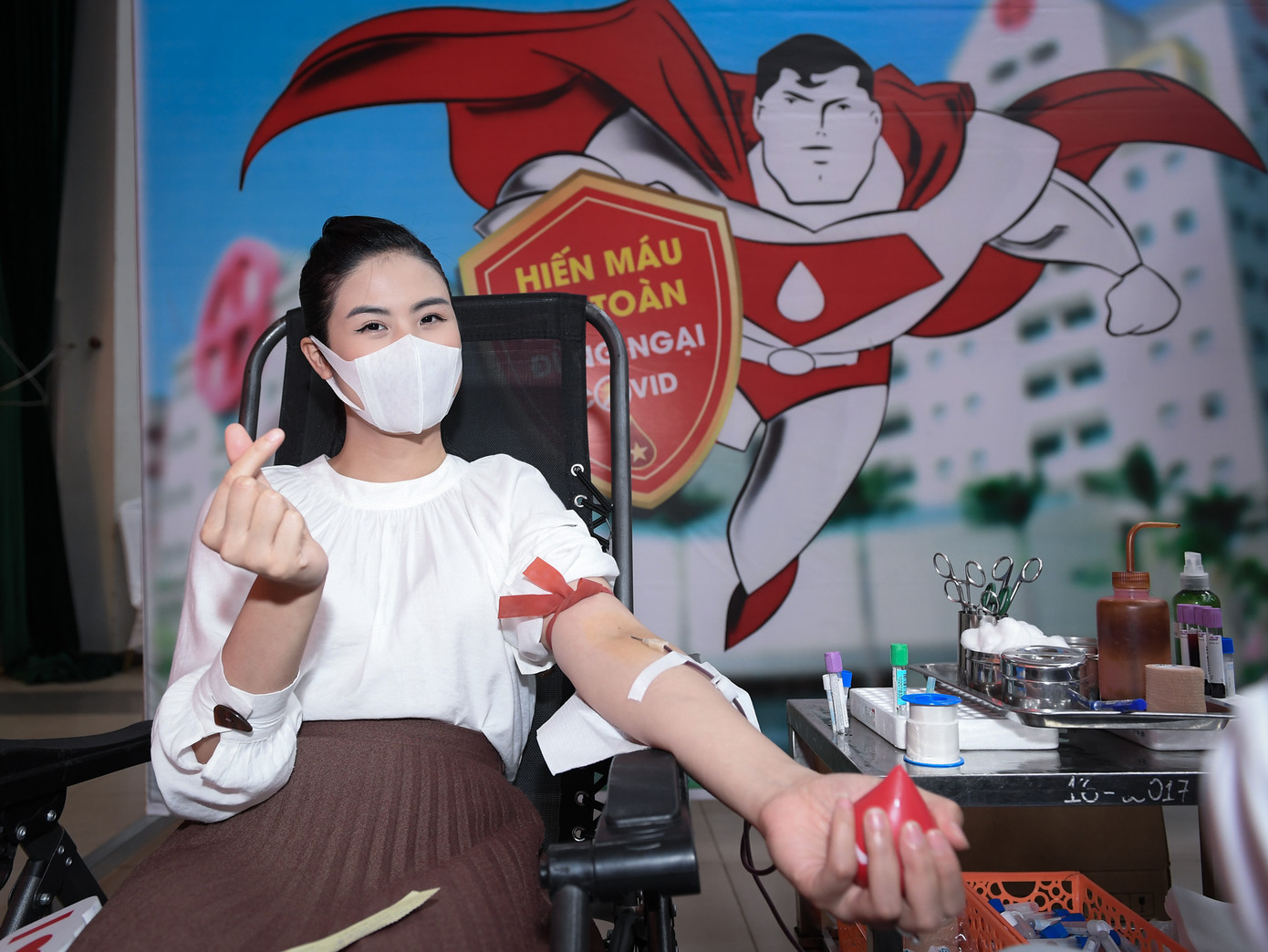 Hoa hậu Ngọc Hân đi hiến máu tình nguyện hưởng ứng chương trình 'Hiến máu an toàn - Đừng ngại Covid" do Viện Huyết Học Truyền Máu Trung Ương tổ chức.