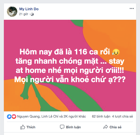 Hoa hậu Mỹ Linh kêu gọi mọi người ở nhà giữa tình hình dịch bệnh căng thẳng.