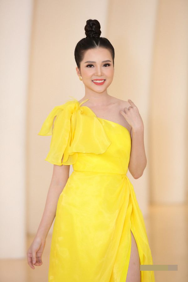 Hoa khôi Cần Thơ Thuý Vi chọn váy màu vàng nổi bật.