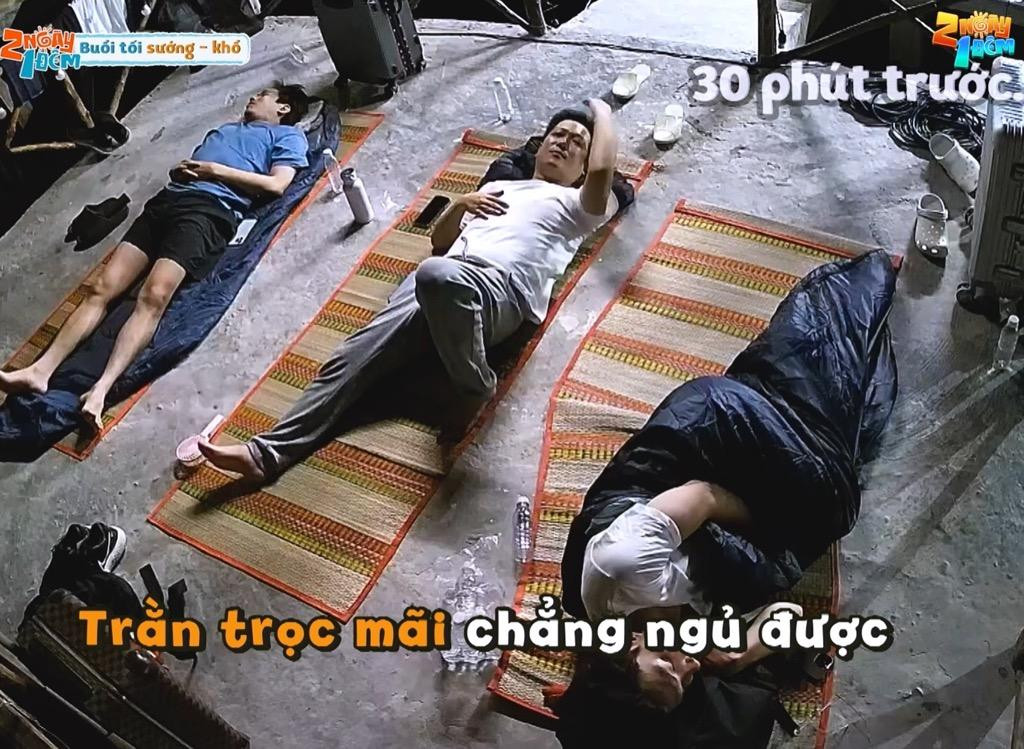 Đêm đầu tiên ngủ ngoài trời khiến Trường Giang thao thức, trằn trọc. Khi cả hai người bạn đồng hành đã say giấc, anh cả vẫn không ngủ được, anh chọn ra một góc ngồi trầm ngâm. Được biết, trong những chuyến đi quay xa nhà, Trường Giang rất nhớ vợ con.