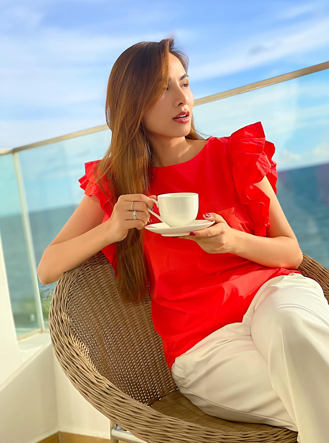 Hoa hậu Diễm Hương vẫn xinh đẹp rạng rỡ dù diện trang phục đơn giản, thanh lịch.