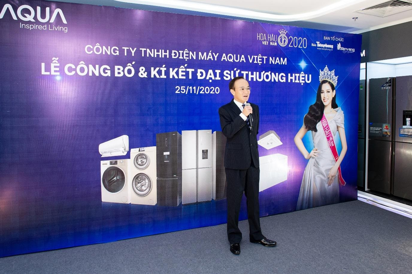 Phát biểu tại sự kiện, ông Yuyo Murakami - Giám đốc Điều hành AQUA Việt Nam cho biết: “Đại sứ thương hiệu đóng một vai trò quan trọng trong việc kết nối AQUA Việt Nam với người tiêu dùng, và giúp cho thông điệp của thương hiệu được truyền tải tốt hơn tới khách hàng. Lễ công bố Đại sứ thương hiệu ngày hôm nay sẽ là bước khởi đầu tốt đẹp cho việc hợp tác giữa AQUA Việt Nam và Tân Hoa hậu. Chúng tôi cũng kỳ vọng rằng AQUA Việt Nam và Tân Hoa hậu sẽ cùng chia sẻ một mục tiêu chung trong năm 2021, đó chính là Khơi nguồn cảm hứng sống cho người dân Việt Nam”.