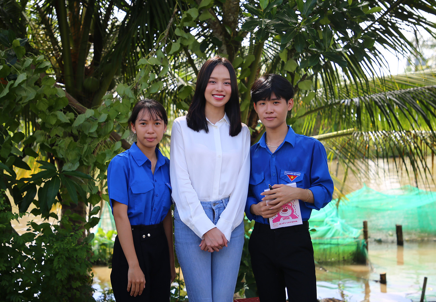 | Hoa hậu gần gũi với các bạn đoàn viên, thanh niên. |