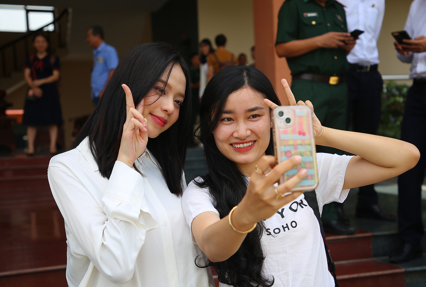 | Sau chương trình, các đoàn viên, thanh niên chụp ảnh cùng hoa hậu. |