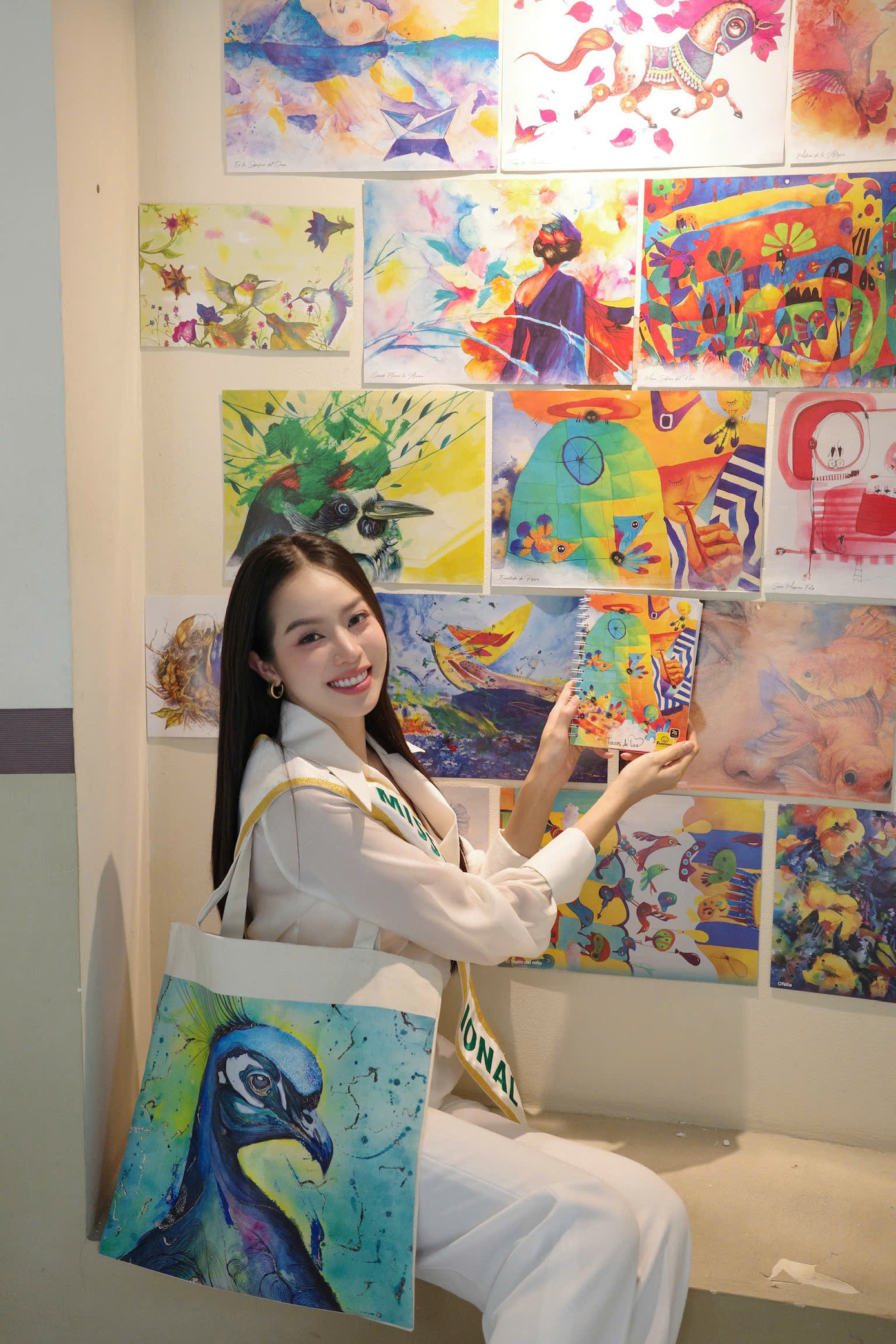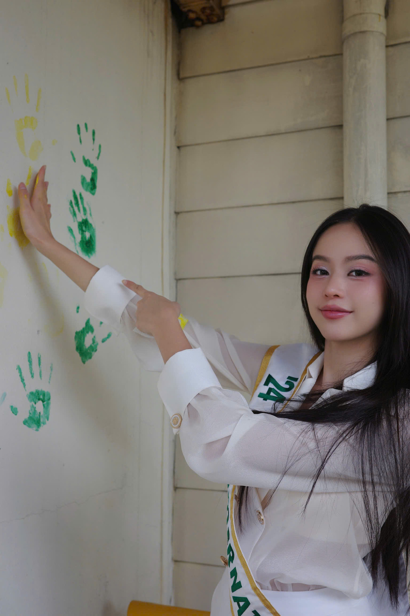 “Thuỷ vừa trải qua cảm giác không nhìn thấy gì cả. Trong lúc bịt mắt, mọi người xung quanh cũng không nói gì và Thuỷ chỉ biết chờ được dắt đi. Họ để Thuỷ chạm vào lan can để tự lần mò bước xuống. Lúc đó xung quanh có rất nhiều tạp âm, Thuỷ cảm thấy rất sợ, mình chỉ cảm nhận được ánh nắng và gió, còn lại thì hoàn toàn mơ hồ. Qua trải nghiệm này, Thuỷ mới cảm nhận được phần nào cuộc sống của những em nhỏ khiếm thị", Miss International 2024 chia sẻ.