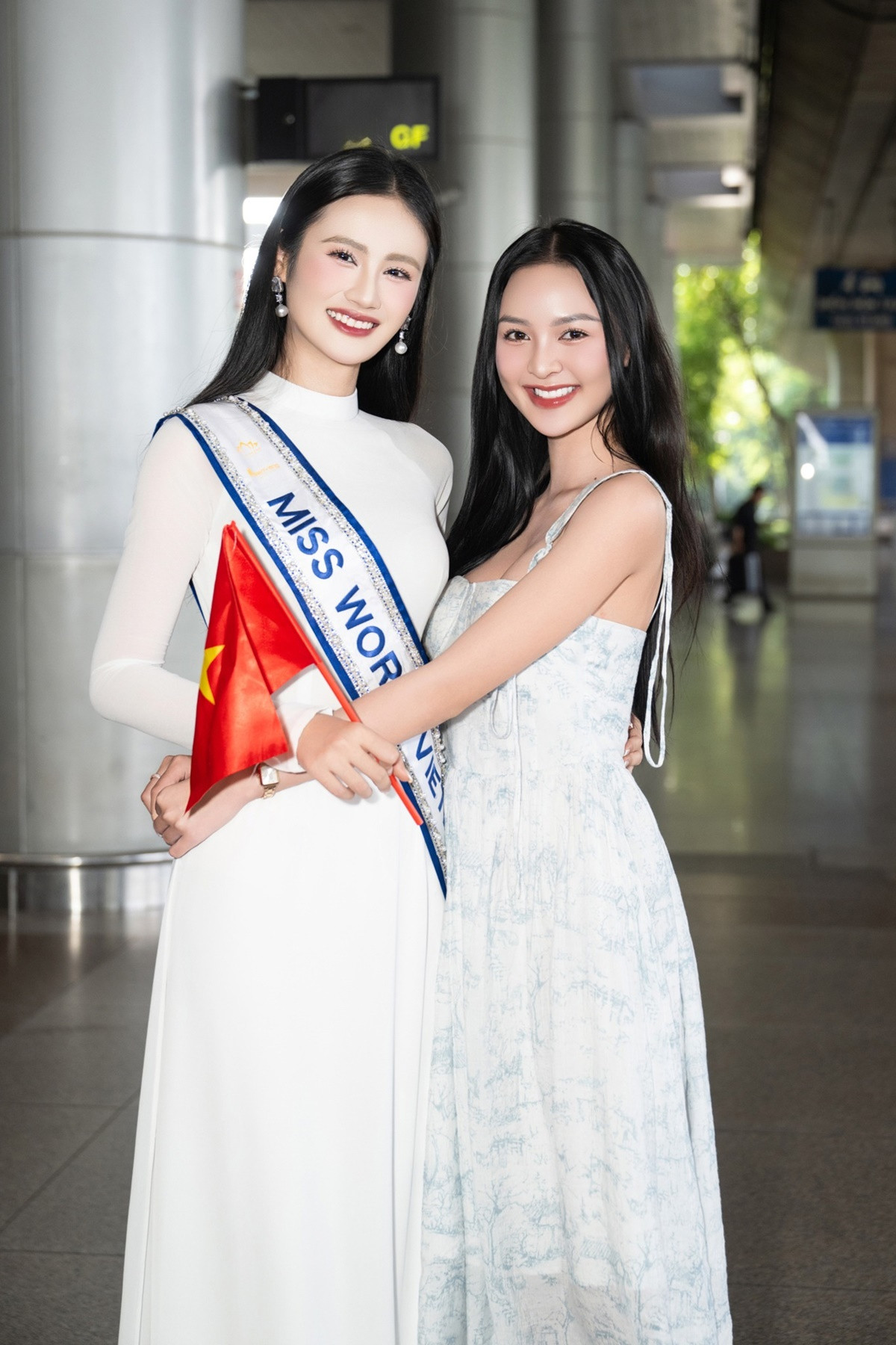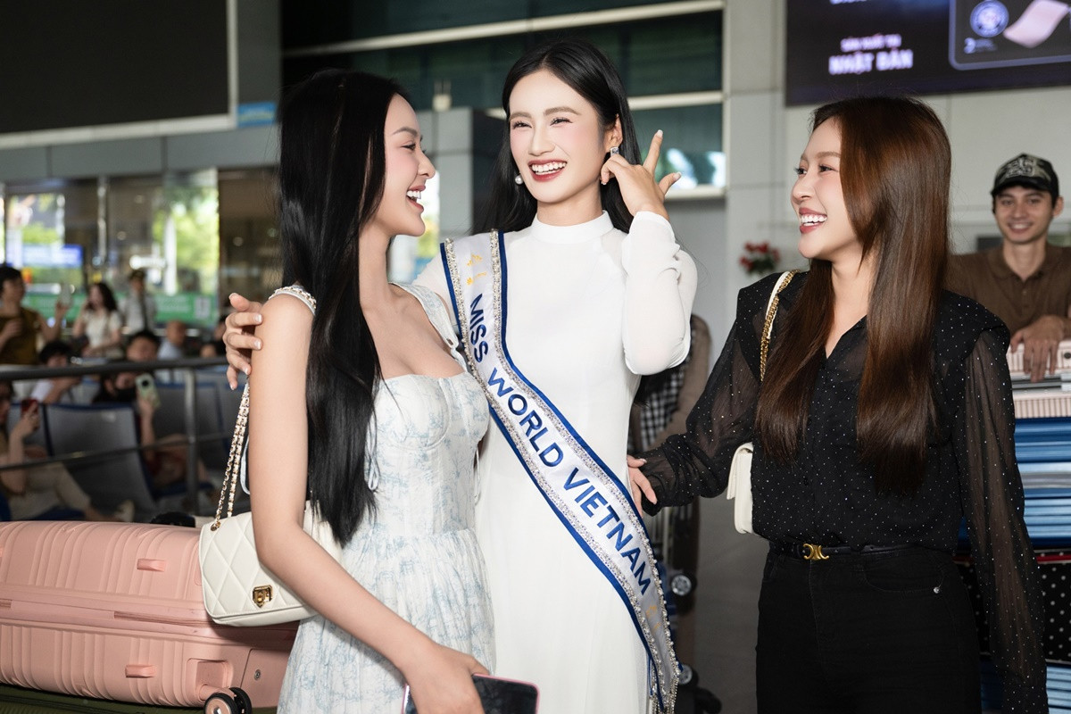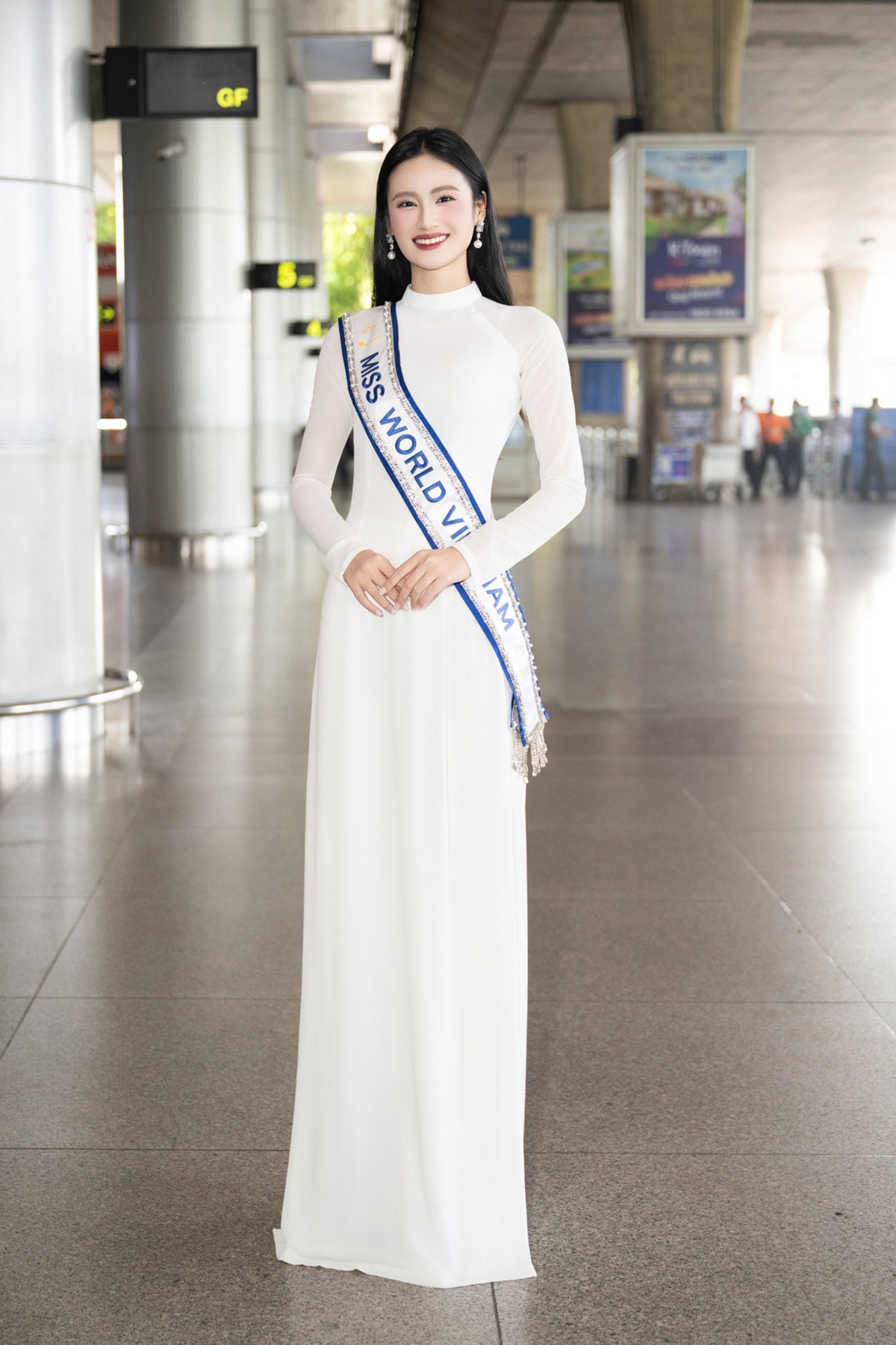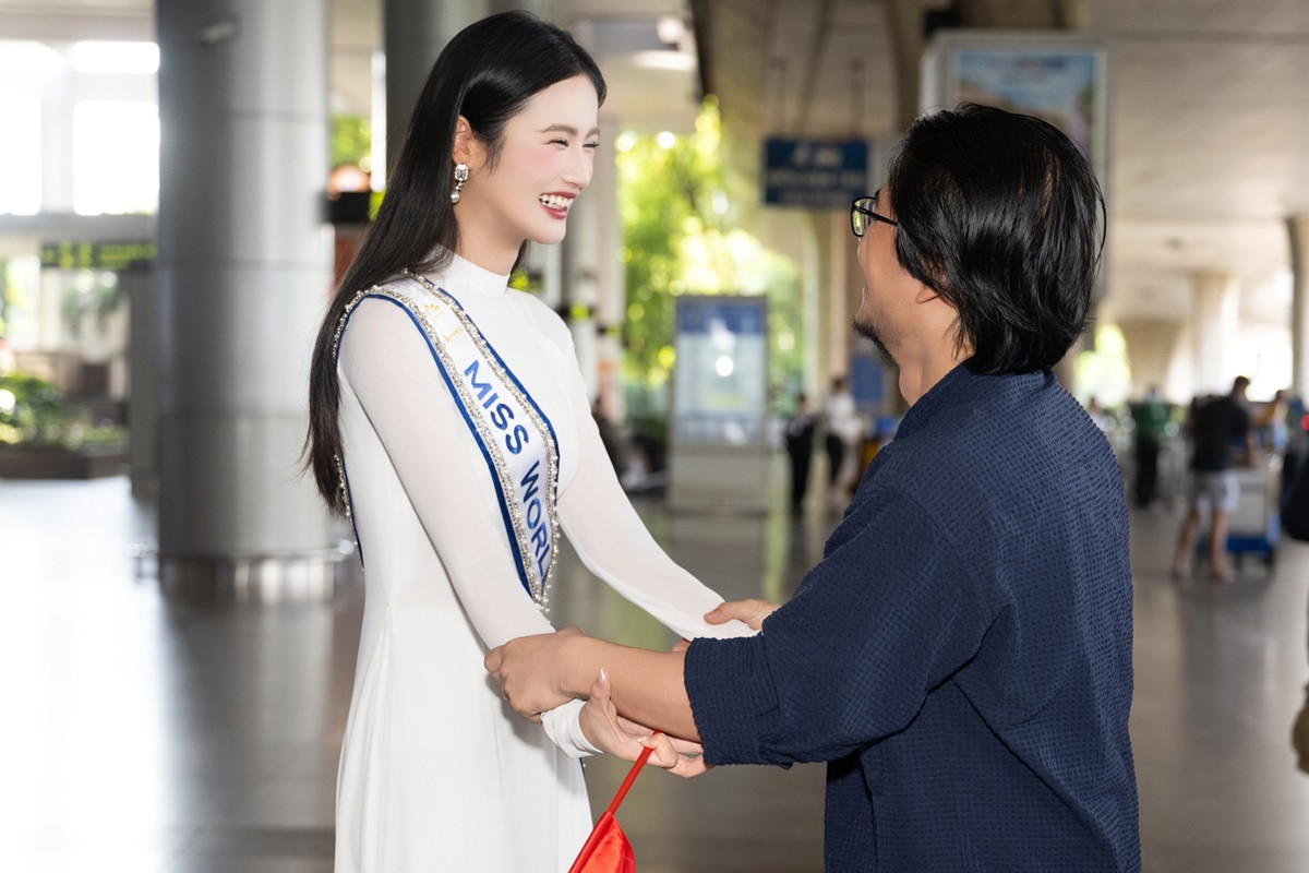 Hoa hậu Ý Nhi được BTC Miss World tiễn ra sân bay, diện áo dài khi về tới Việt Nam