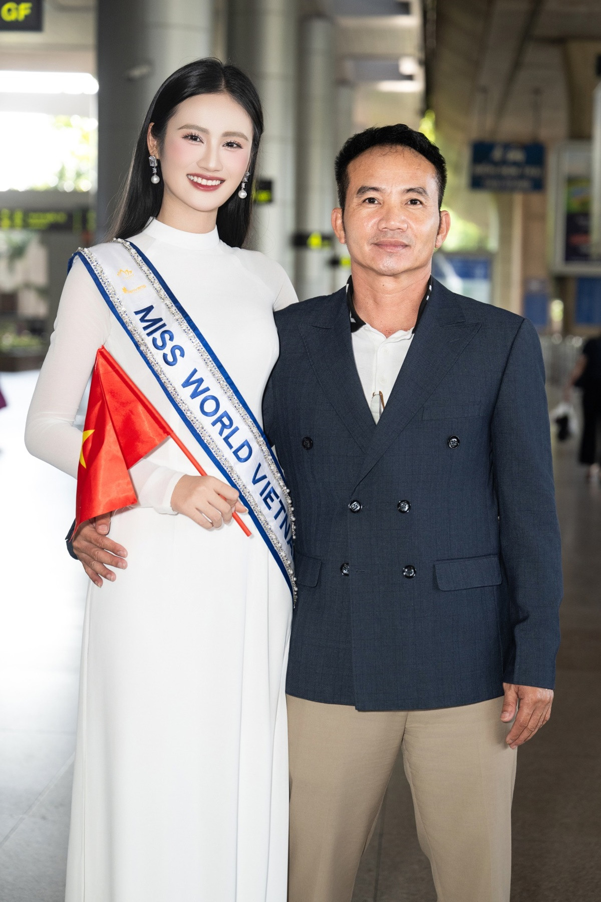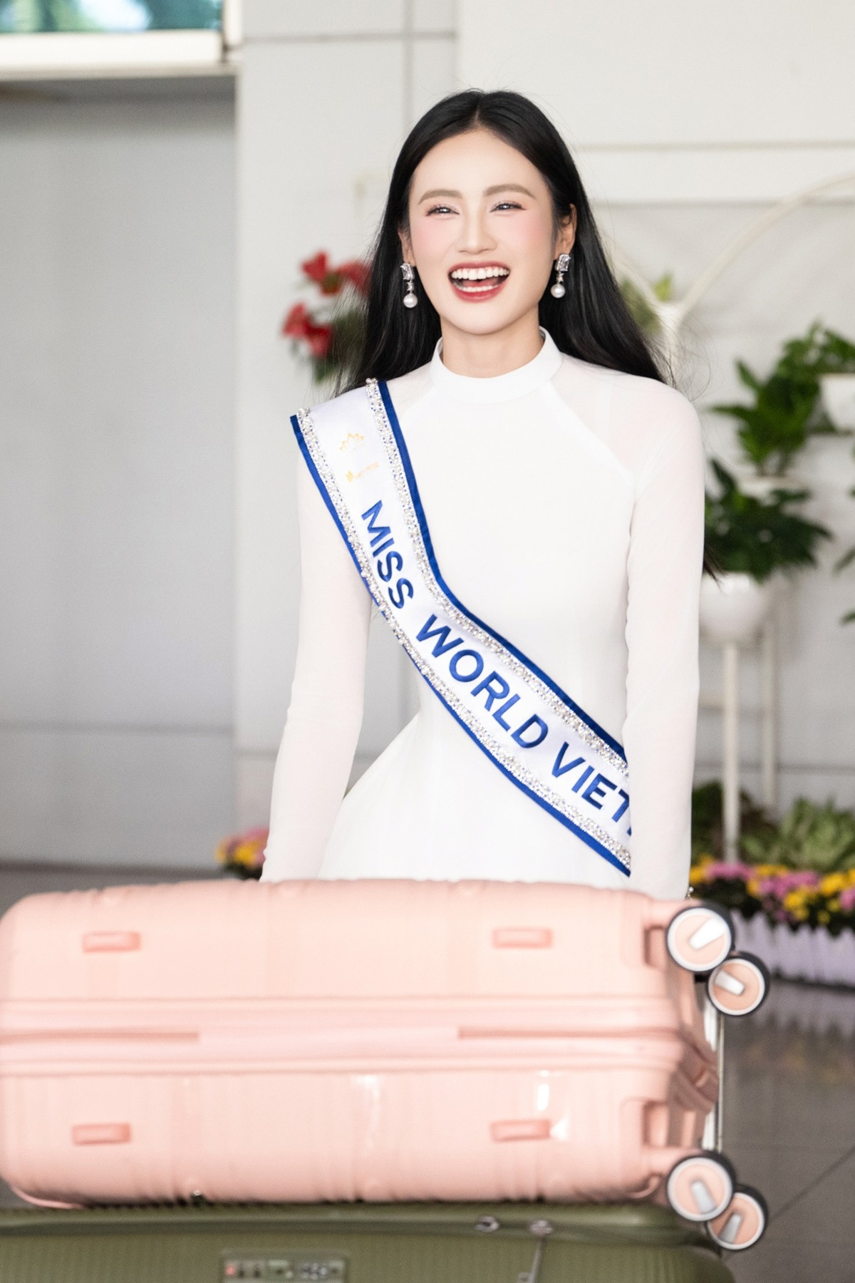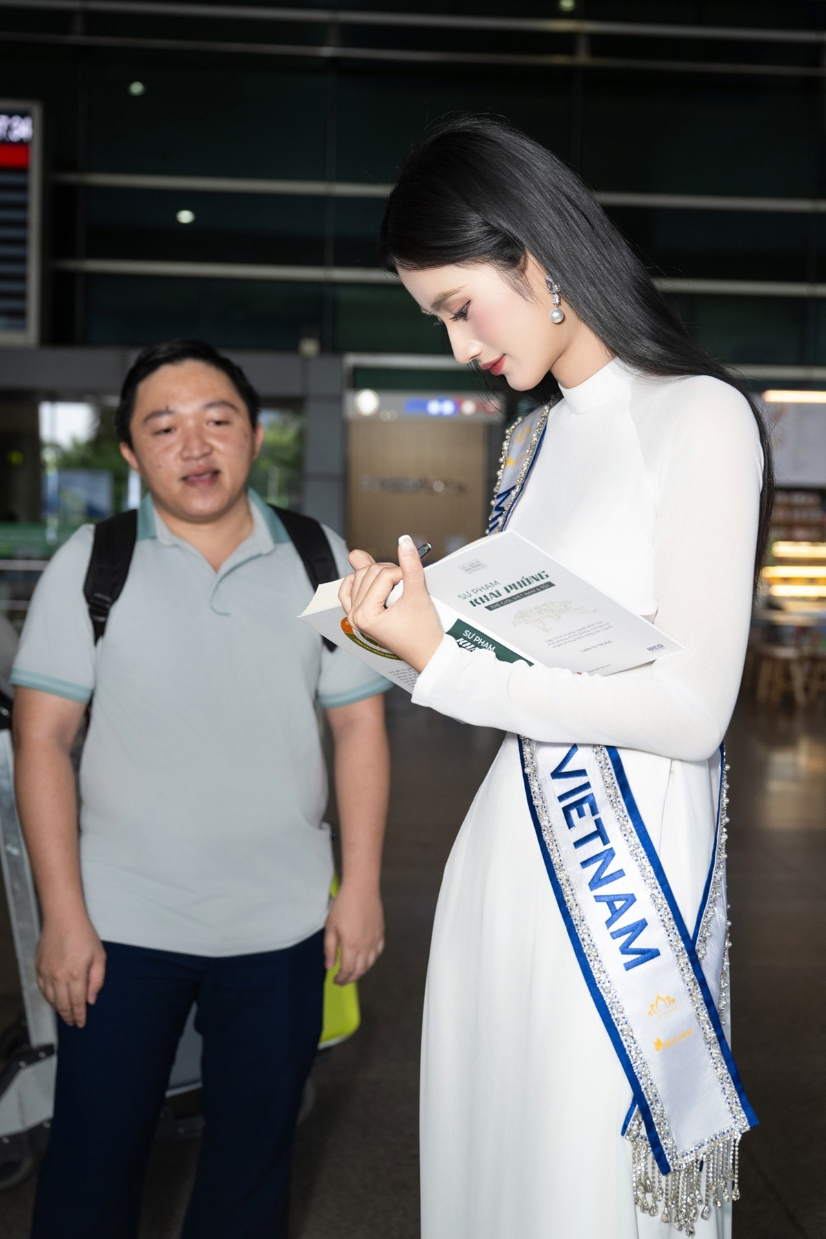 Hoa hậu Ý Nhi được BTC Miss World tiễn ra sân bay, diện áo dài khi về tới Việt Nam