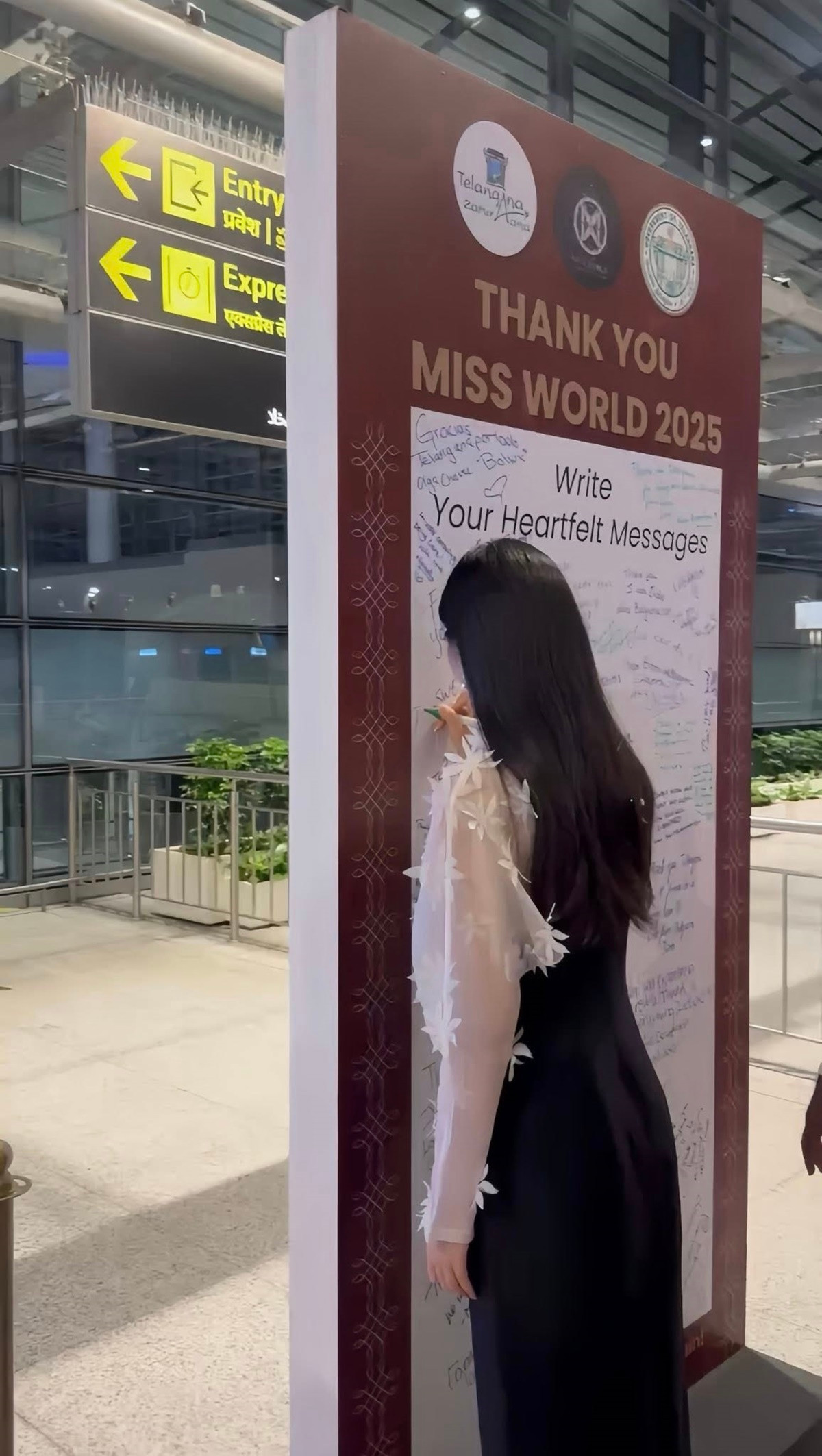 Hoa hậu Ý Nhi được BTC Miss World đưa ra sân bay vô cùng chu đáo và cẩn thận. Nàng hậu được bảo vệ an toàn và được đông đảo người dân Telangana ra tận nơi chào tạm biệt.