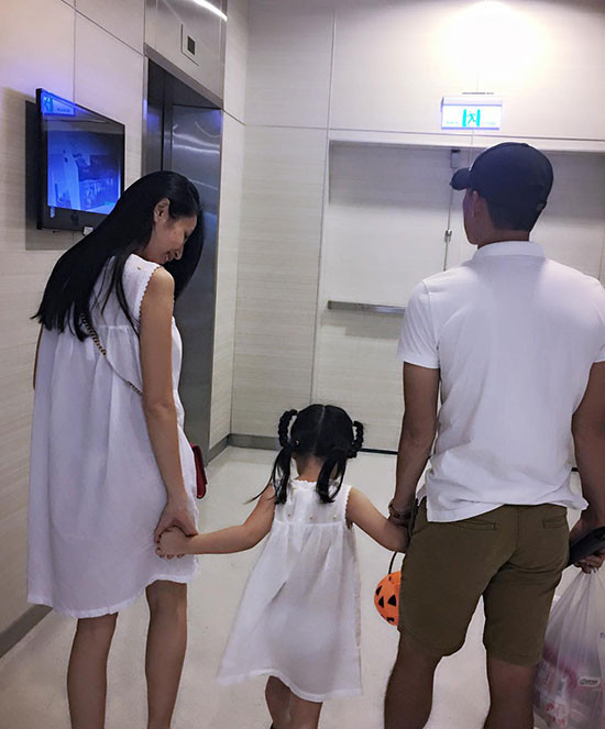 Tuy nhiên, trao đổi với báo chí, nữ ca sĩ phủ nhận tin đồn đang mang thai. Đồng thời chia sẻ, cô mặc đồ rộng cho thoải mái. Được biết, ngay sau khi vui chơi và chụp hình cùng vợ con, tiền đạo Công Vinh phải lên đường sang Hàn Quốc tập huấn cùng đội tuyển Việt Nam. Chiều 16/10, anh và các đồng đội đã có buổi tập đầu tiên tại xứ kim chi.