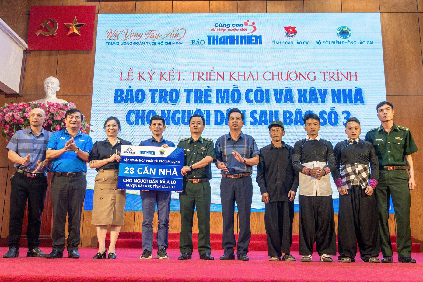 Tại chương trình Tập đoàn Hòa Phát đã trao tài trợ xây dựng 28 căn nhà cho người dân xã A Lù, huyện Bát Xát thông qua sự kết nối của báo Thanh Niên.