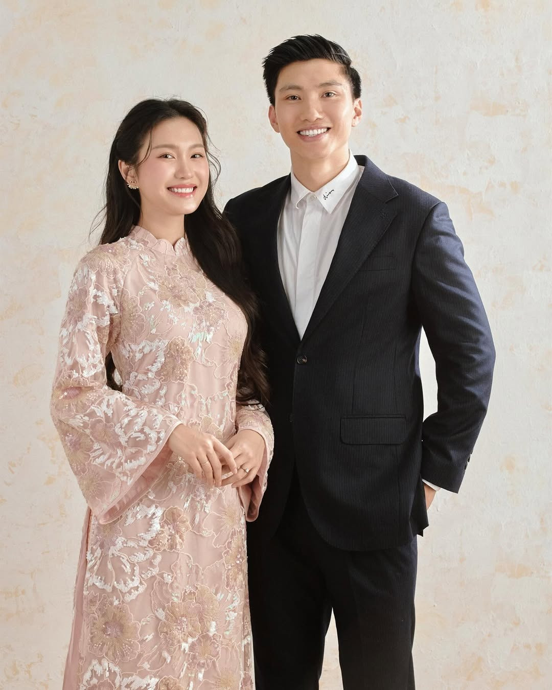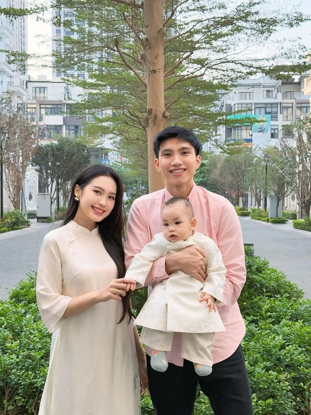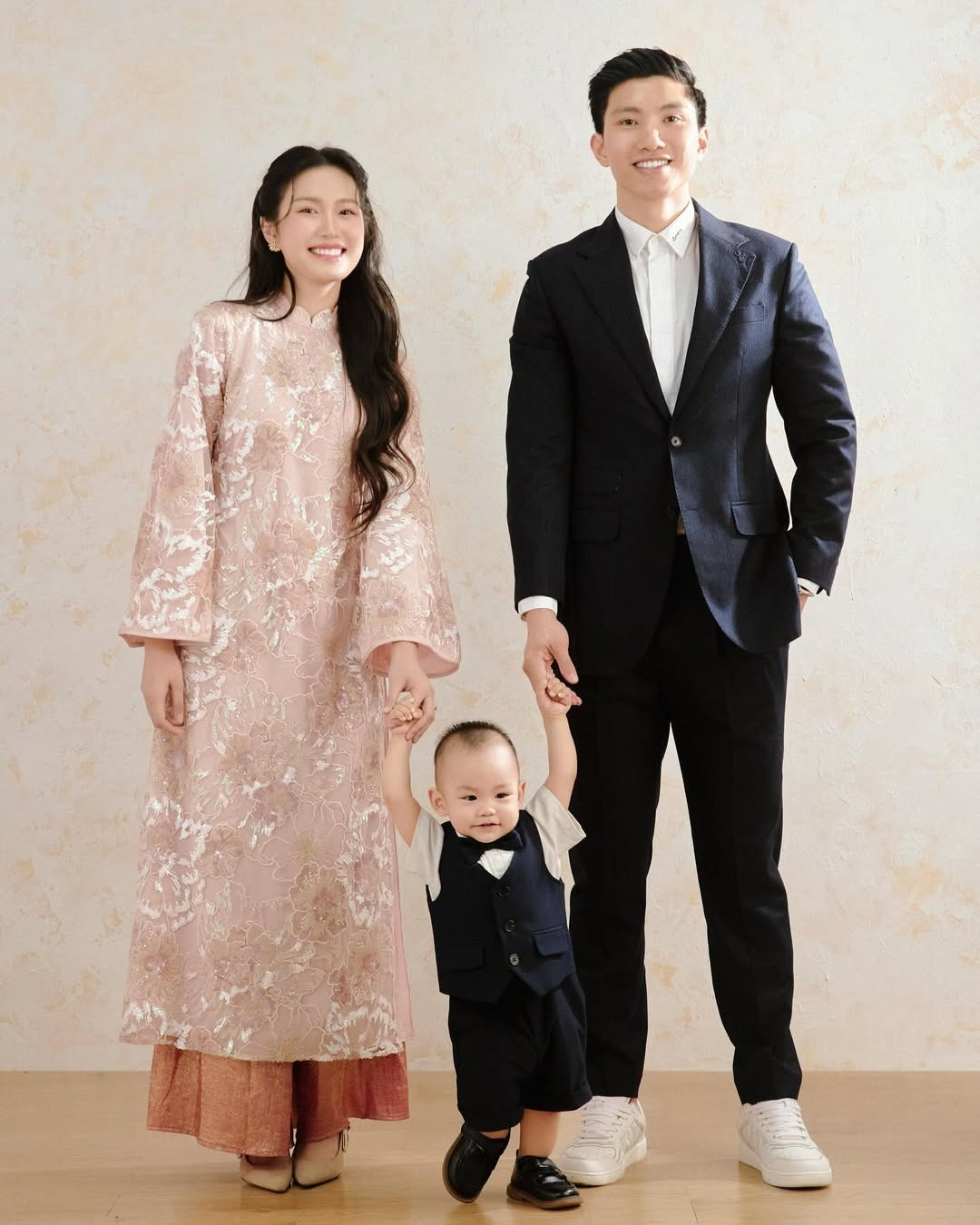 Trong dịp Tết Ất Tỵ vừa rồi, Doãn Hải My đã chia sẻ khoảnh khắc gia đình ba người cười tươi hạnh phúc trước tủ kính bày kín huy chương, kỷ cúp và bằng khen mà Đoàn Văn Hậu nhận được. Ba thành viên mặc áo dài màu xanh nhạt đồng điệu và ai cũng khen bé Lúa lấy được hết nét đẹp của cả bố lẫn mẹ.