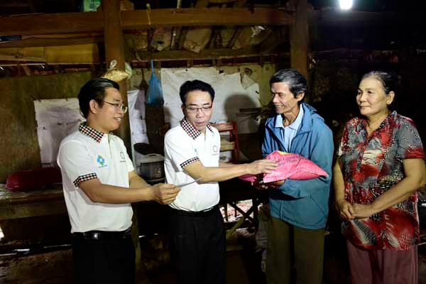 Ông Hồ Thanh Hiếu, Phó Tổng giám đốc Tập đoàn Hoa Sen cùng đại diện tập đoàn trực tiếp thăm hỏi, động viên và tặng quà cho từng hộ dân chịu ảnh hưởng nặng nề nhất của đợt bão lũ trong tháng 11/2016.