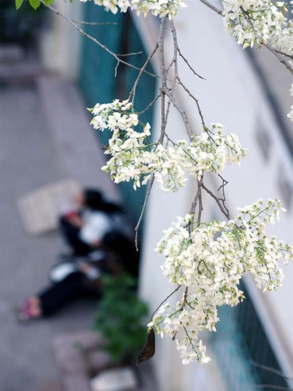 | Những cành hoa sưa trắng muốt đồng loạt nở trong những ngày đầu tháng ba tại nhiều địa điểm của thủ đô. |