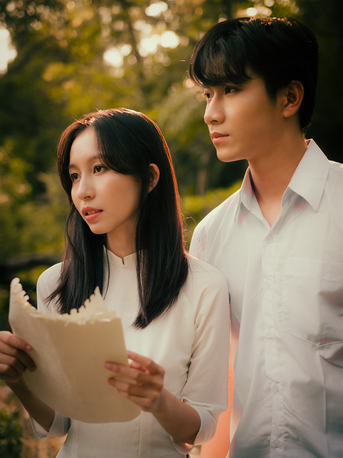 Mới đây, cặp đôi Nguyễn Đình Linh, sinh 1997 đến từ Bà Rịa-Vũng Tàu (hóa thân thành Ngạn) và Nguyễn Kiều Giang, sinh năm 2003 quê ở Đồng Nai (hóa thân thành Hà Lan) đã quyết định thực hiện bộ ảnh “Mắt biếc” để lưu lại những kỷ niệm thời thanh xuân tươi đẹp.