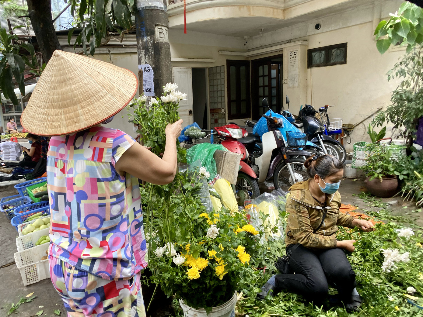 Một số chợ nhỏ tại các khu dân cư, tiểu thương rao giá 6.000 đồng/ bông hoa cúc. Chị Minh Ngọc (Nam Từ Liêm, Hà Nội) cho biết, chị vừa mua 5 bông hoa cúc thắp hương với giá 30.000 đồng, đắt hơn hẳn ngày Mùng 1 Âm lịch vừa qua. “Thường ngày mình không mua hoa cúc bao giờ, chỉ mua mỗi lần thắp hương nên không so đo giá cả, nhưng hôm nay thì đắt bằng Tết rồi”, chị Ngọc nhẩm tính