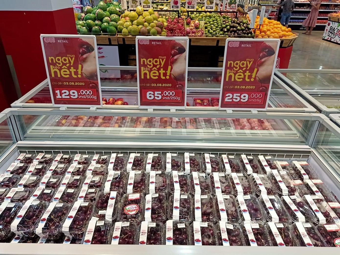 Tại các siêu thị lớn, cherry sau khuyến mại giảm còn 259.000 – 299.000 đồng/kg. Tuy nhiên, giá của loại quả này có sự chênh lệch giữa các cửa hàng, siêu thị. Một số nơi vẫn bán hơn 400.000 đồng/kg cherry. Lý giải cho điều này, một chủ cửa hàng hoa quả (Hai Bà Trưng, Hà Nội) giải thích, giá cherry khác nhau do độ lớn nhỏ của quả, nước nhập khẩu, vùng trồng, thương hiệu, …