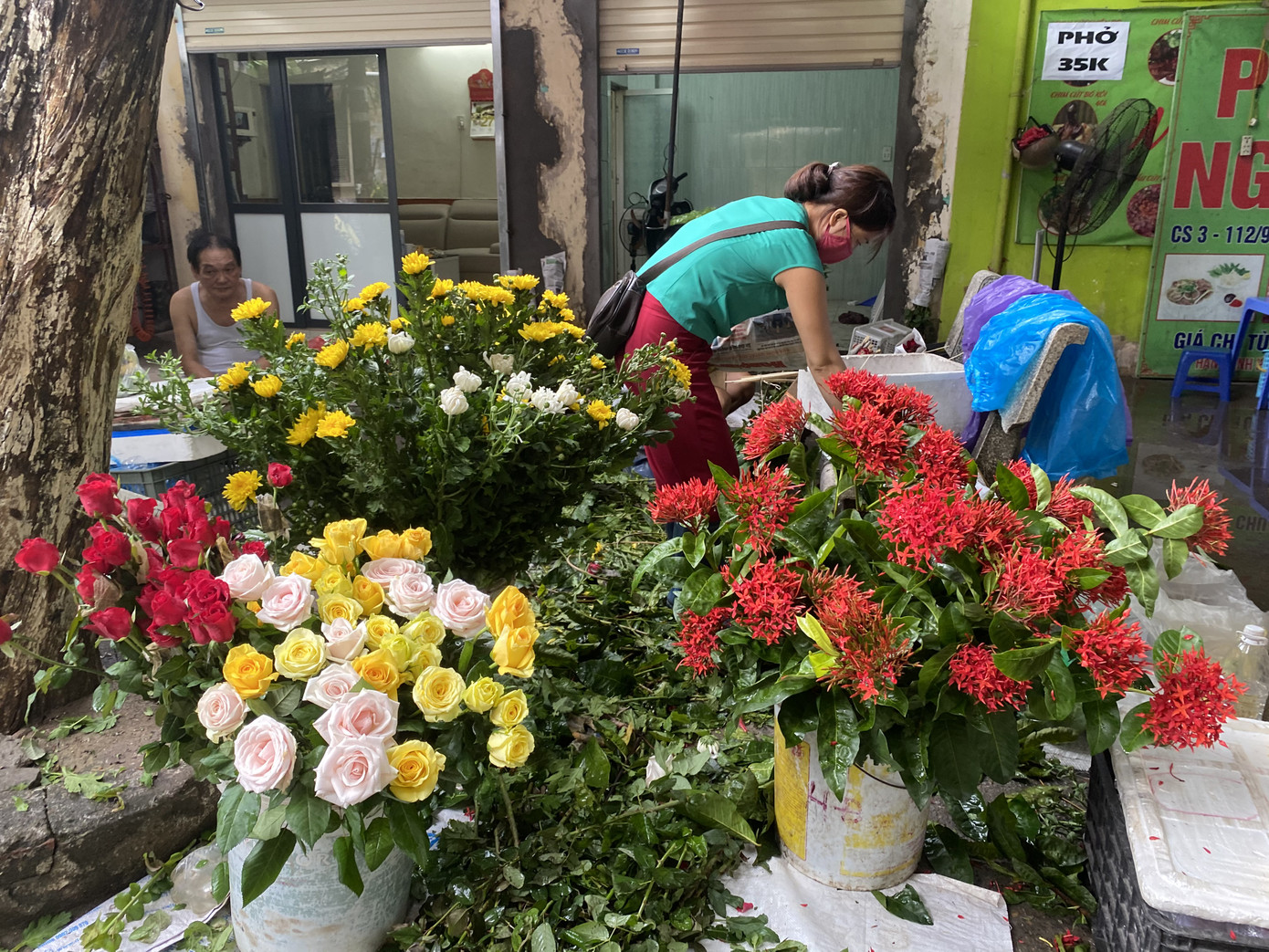Khảo sát tại các chợ truyền thống khu vực Hà Nội, giá hoa tăng nhẹ so với thường ngày. Cụ thể, hai loại hoa phổ biến nhất là hoa hồng và hoa cúc có giá 30.000 – 50.000 đồng/10 bông