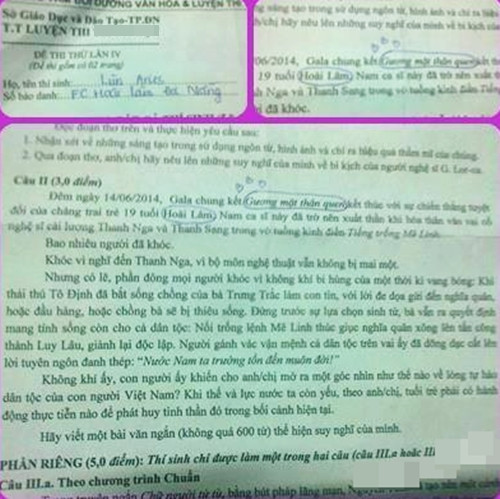 Đề luyện thi môn Văn của một trung tâm luyện thi tại Đà Nẵng nhắc đến quán quân của chương trình Gương mặt thân quen mùa thứ hai - Hoài Lâm.