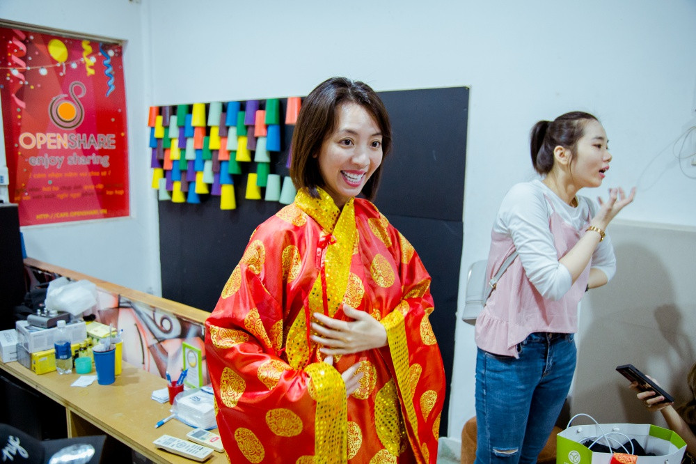 Mãi một lúc sau, Hoài Lâm mới từ từ tháo tóc và râu giả ra khỏi mặt. Cùng thời điểm này, Thu Trang - Tiến Luật từ trong cánh gà bước ra chào khán giả. Để phần giao lưu với Hoài Lâm thêm phần thú vị, Tiến Luật đã tuyên bố: "Ngày hôm nay Hoài Lâm bao tiền nước tất cả mọi người".