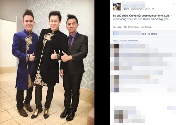 Chàng trai này còn gọi bố mẹ danh hài là ông bà nội, gọi Dương Triệu Vũ là chú út hay Hoài Lâm - con nuôi của danh hài Hoài Linh - cũng chia sẻ tấm ảnh gọi Thành Vinh là anh cả.