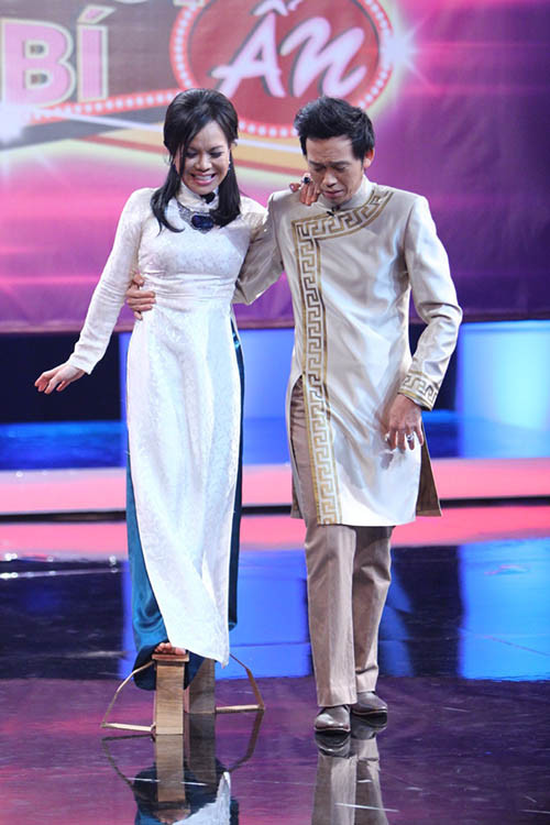 Tối 20/4, tập 4 'Người bí ẩn' lên sóng truyền hình với cặp khách mời Xuân Lan - Nam Trung. MC Trấn Thành, đội nhà Hoài Linh - Việt Hương và đội khách đã có màn 'chào sân' ấn tượng khi cùng mặc áo dài truyền thống.