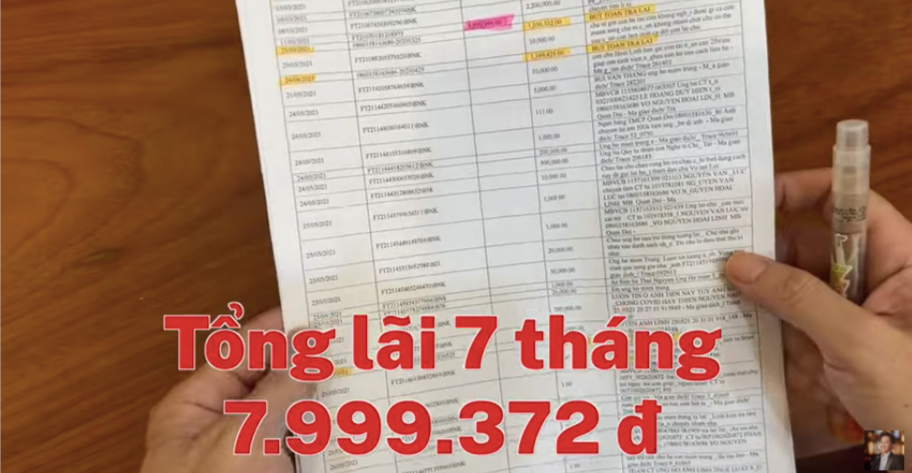 Cụ thể, 25/11/2020 ngân hàng hoàn trả số tiền lãi là 1.070.126 đồng. Lần thứ 2, 25/12/2020 là 1.181.776 đồng; 25/1/2021: 1.217.695 đồng; 25/2: 1.172.214 đồng; 25/3: 1.056.332 đồng; 24/4: 1.169.425 đồng; 25/5: 1.131.804 đồng. Số tiền lãi cộng lại là 7.999.372 đồng.