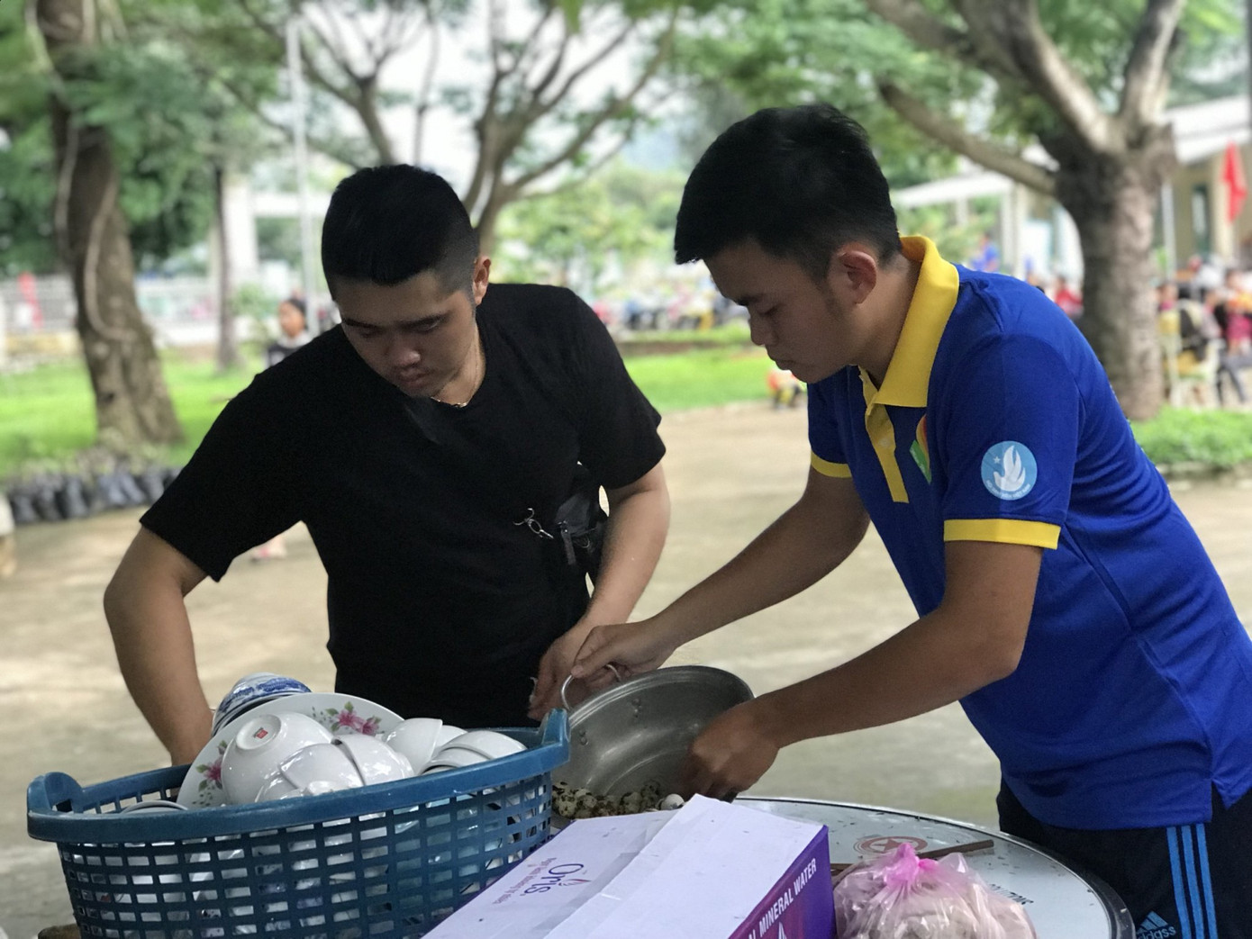 Chiến tích cực tham gia các hoạt động thiện nguyện khi có thời gian rảnh. (Ảnh: NVCC). Tất bật với việc học, đi làm thêm nhưng Chiến vẫn dành thời gian tham gia các hoạt động phong trào do Đoàn, Hội trường tổ chức. Với vai trò là Bí thư Chi đoàn lớp Quản lý Công nghiệp, Chiến thường xuyên tổ chức cho đoàn viên tham gia phát đồ ăn khuya cho những người lao động mưu sinh trong đêm, ở khu vực gần trường. Chiến còn kết hợp với một câu lạc bộ thiện nguyện tổ chức chương trình bán cơm từ thiện 2.000 đồng/suất cho những người lao động nghèo.