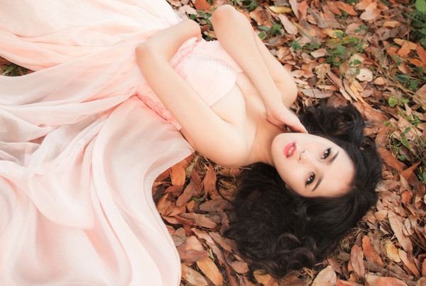 Á hậu Việt Nam 2012 khoe vẻ đẹp thơ ngây, trong trẻo đi dạo giữa khung cảnh núi đồi mộng mơ.
