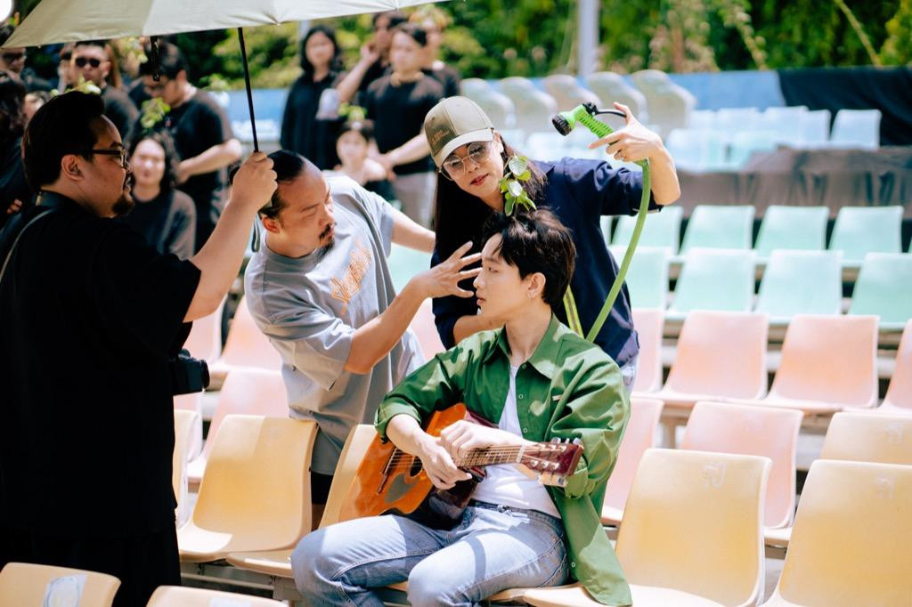 | Ca sĩ Thu Phương và Hoàng Dũng tại hậu trường quay MV |