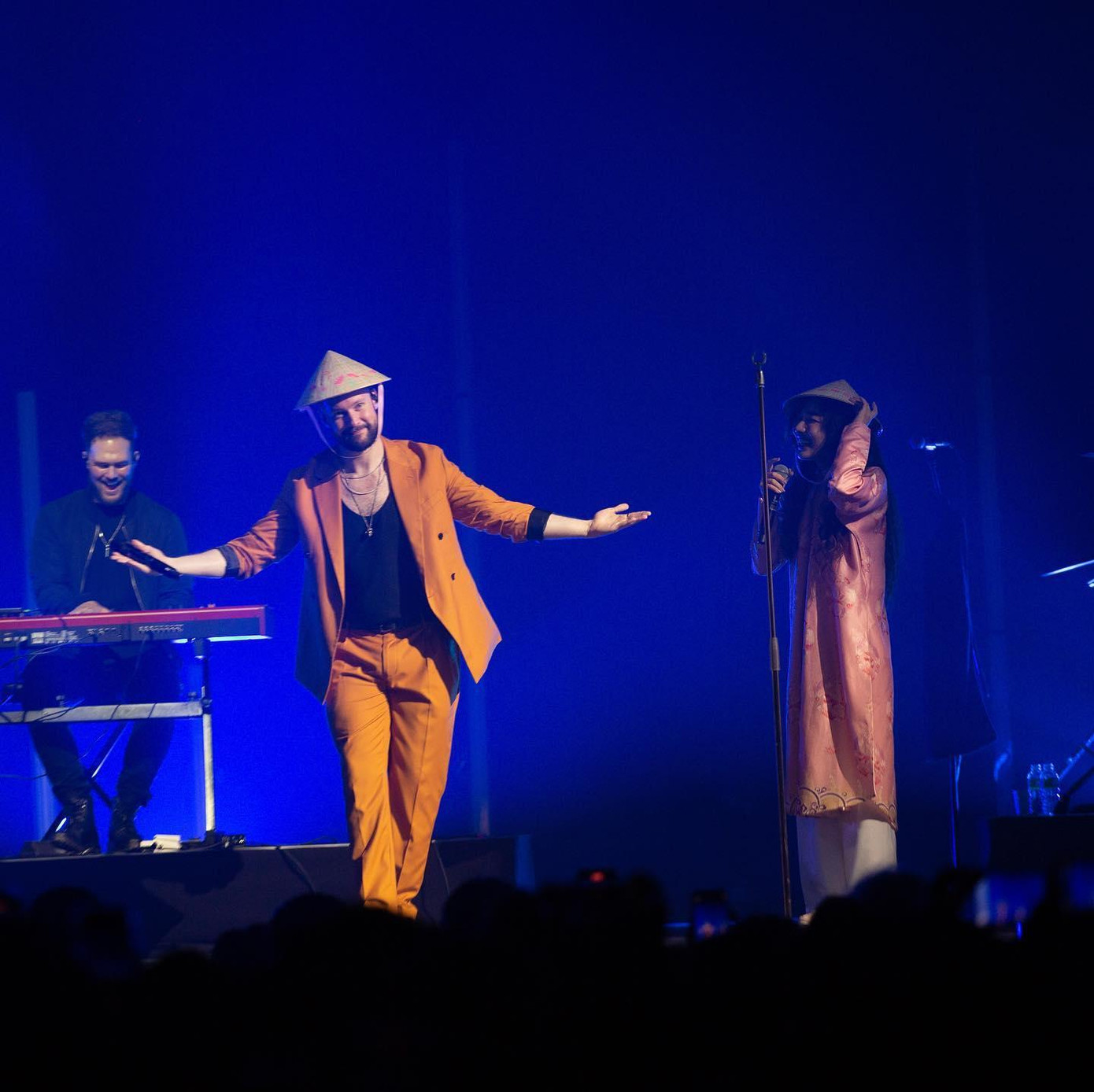 Không chỉ ghi dấu ấn với màn trình diễn song ngữ Anh - Việt, Hoàng Duyên còn giao lưu với khán giả bằng tiếng Thái và tương tác với Calum Scott bằng tiếng Anh. Trong trang phục truyền thống Việt Nam, nữ nghệ sĩ gửi lời chào đến khán giả bằng chính ngôn ngữ Thái Lan: “Xin chào Thái Lan! Tôi là Hoàng Duyên đến từ Việt Nam. Cảm ơn mọi người vì đã ở đây ngày hôm nay. Tôi yêu các bạn rất nhiều”.