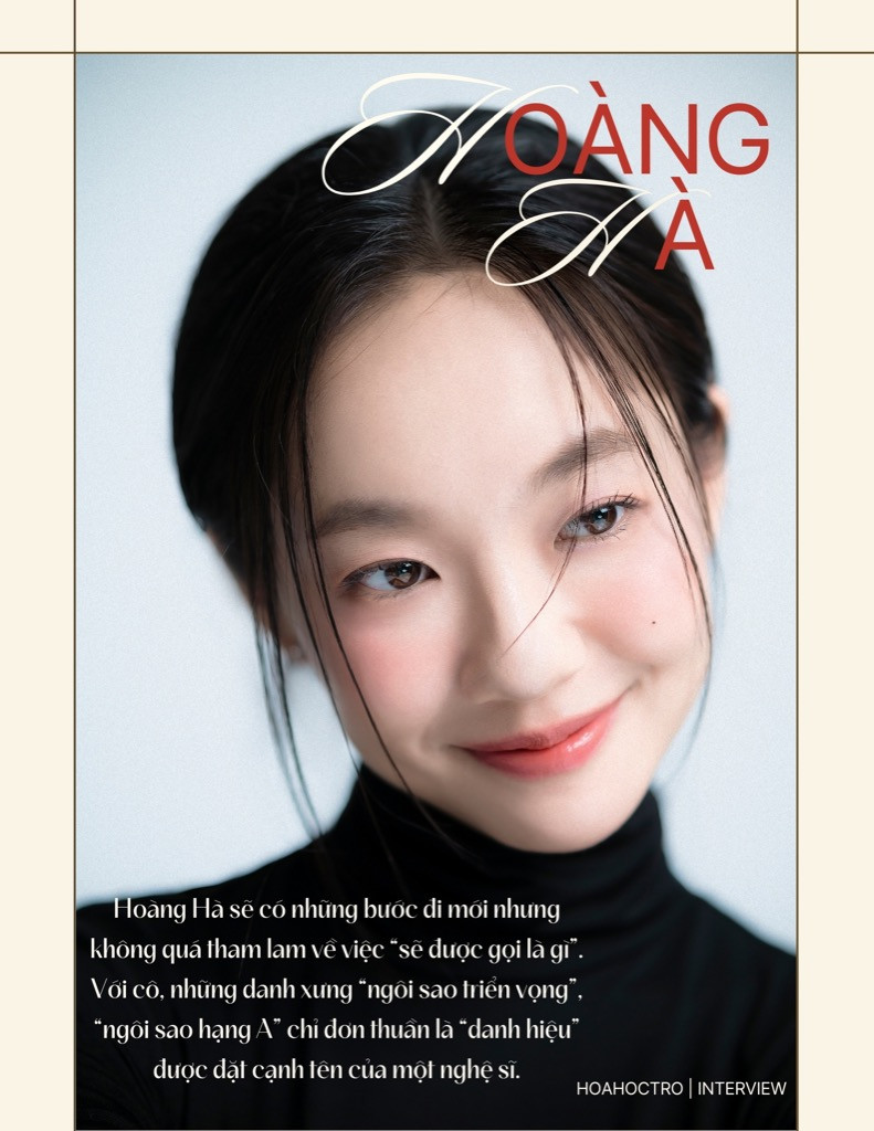 Bật mí về những dự định trong năm mới, Hoàng Hà không quá tham lam về việc “sẽ được gọi là gì”. Với cô, những danh xưng như “ngôi sao triển vọng”, “ngôi sao hạng A” chỉ là “danh hiệu” được đặt cạnh tên của nghệ sĩ. Cô cũng mong sớm được làm việc với những ê-kíp quốc tế để có thêm dấu ấn trong sự nghiệp, chứ không vội tìm kiếm hào quang hay sự thành công xa vời.