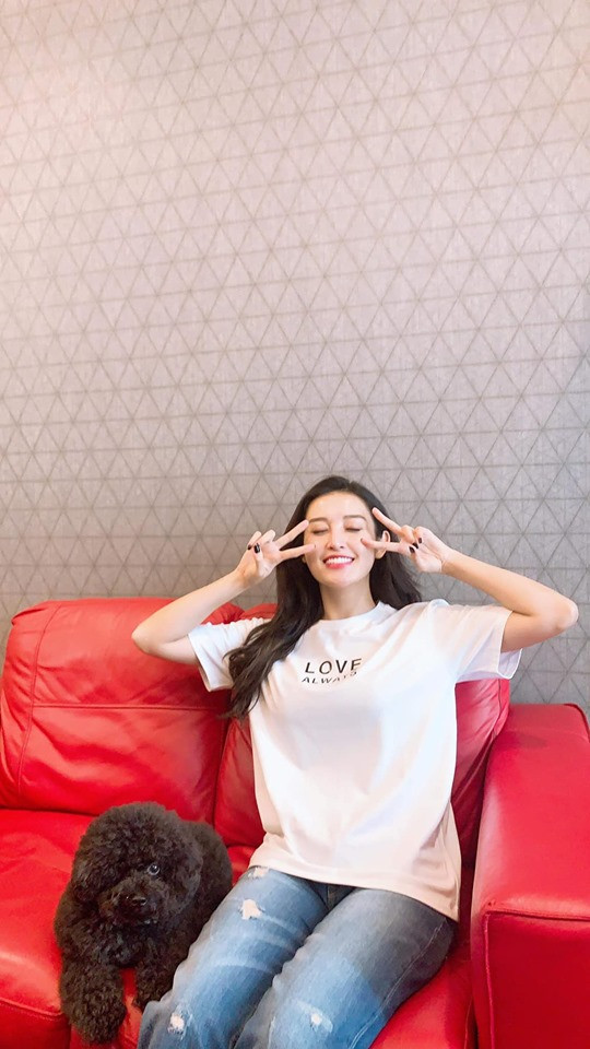 Á hậu Huyền My nhí nhảnh bên chú cún cưng.