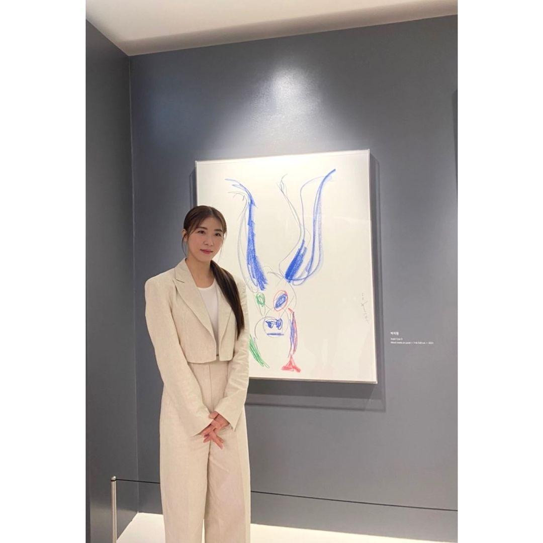 Tháng trước, người đẹp đã có dịp giới thiệu 3 trong số các bức tranh của mình từ bộ sưu tập "Super Cow" tại phòng trưng bày Atelier Signature Kitchen Suite ở Cheongdam-dong, Gangnam.