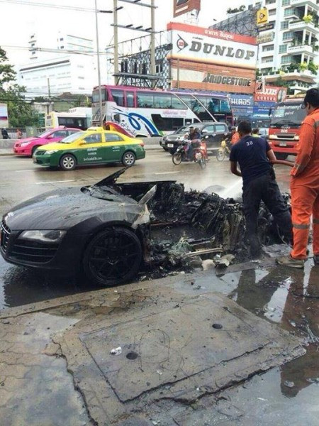 Trước đó, tạiLondon, Anh Quốc, một chiếc Audi R8 cũng bị thiêu rụi tương tự. Ngọn lửa cũng phátra từ khoang động cơ.