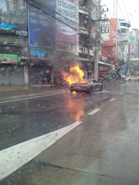Vụ việc kể trên vừa xảy ra ở Thái Lan. Mặc dù khi đó,trời đang đổ mưa và lực lượng cứu hỏa đã tới, nhưng vẫn không giúp được gì. Lửaxuất phát ở hệ thống động cơ đặt ở giữa xe, sau đó lan nhanh ra sau. Toàn bộ nộithất của xe đã “tan” theo ngọn lửa.
