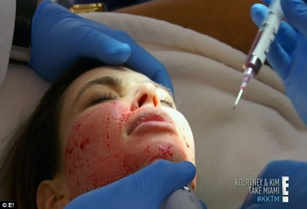 Kim ‘Siêu vòng 3’ vừa qua đã gây chú ý trên truyền hình Mỹ với màn chăm sóc da mặt bằng... máu người. Tuy nhiên đây chính là máu được lấy từ cánh tay của Kim và được đưa vào máy để loại bỏ tiểu cầu.