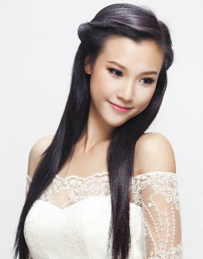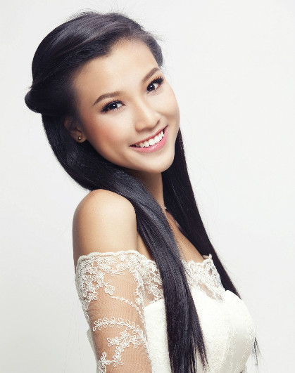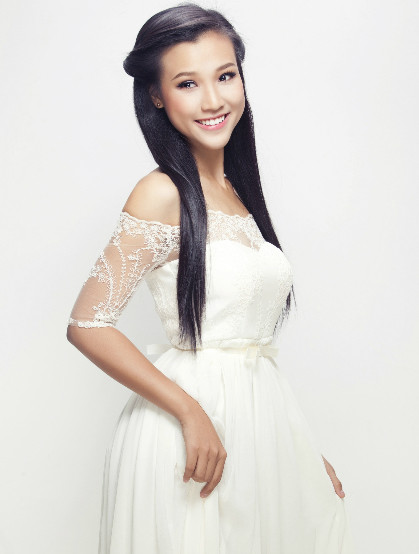Cách làm tóc và trang điểm của Hoàng Oanh cũng giản dị, nhẹ nhàng để tôn nét tự nhiên.