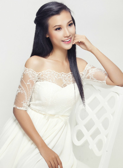 Người đẹp toát lên vẻ dịu dàng, nữ tính trong bộ váy ren khoe vai trần.