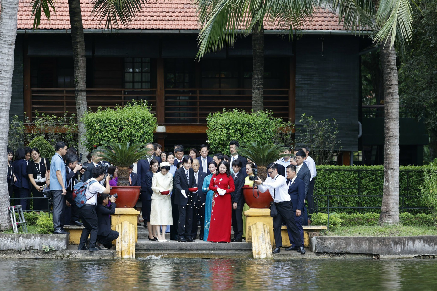 | Phó Chủ tịch nước Võ Thị Ánh Xuân cùng Hoàng Thái tử Nhật Bản và Công nương thăm Nhà sàn Bác Hồ. (Ảnh: Như Ý) |