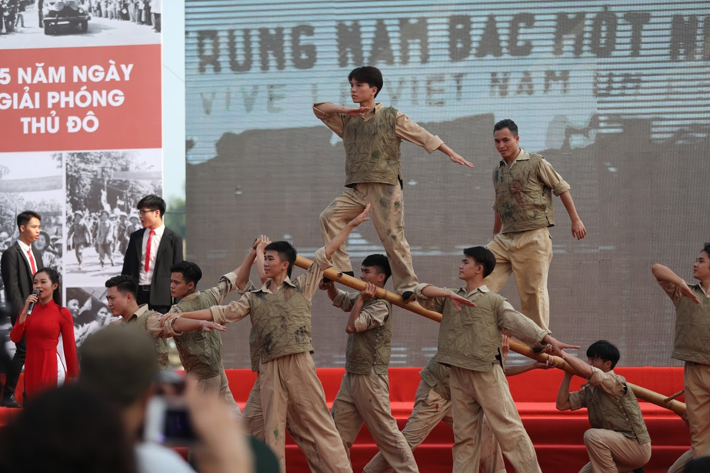 Lễ chào cờ lịch sử diễn ra tại sân Cột Cờ (sân Đoan Môn), là địa điểm 15h chiều 10/10/1954 Ủy ban Quân chính thành phố tổ chức lễ chào cờ lịch sử. Chương trình nghệ thuật Khúc tráng ca giữa mùa thu lịch sử khuấy động không khí, gợi lại lịch sử “năm cửa ô đón mừng”.