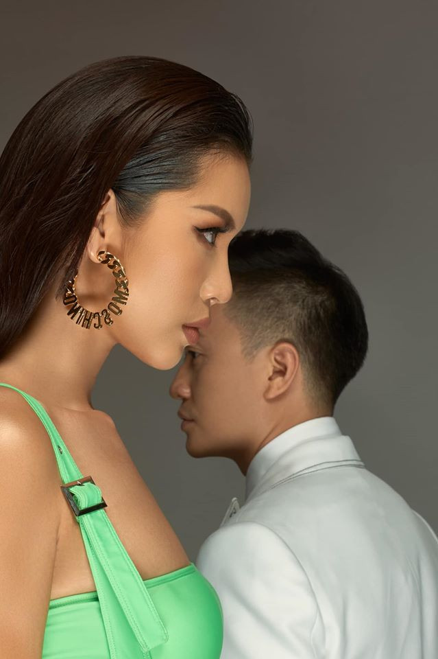 Hoa hậu Siêu quốc gia Việt Nam Minh Tú khoe ngực đầy gợi cảm bên đạo diễn Lương Mạnh Hải.