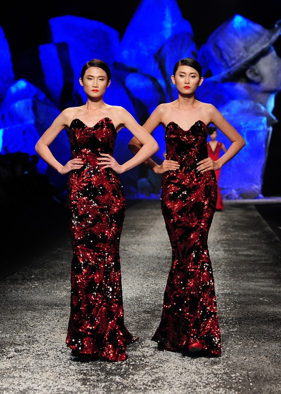 Sau phần giới thiệu BST ứng dụng là những thiết kế dạ hội kiểu cách dành cho mùa thu đông 2014.