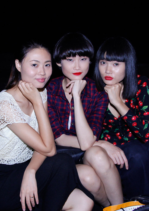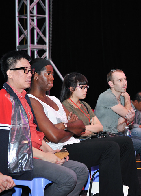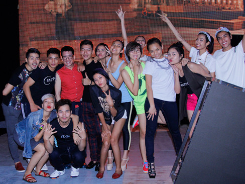 Quán quân Vietnam’s Next Top Model 2011 Hoàng Thùy và Quán quân Vietnam’s Next Top Model 2012 Mai Giang cũng có trên sàn tập, cả hai tỏ ra khá thân thiết.