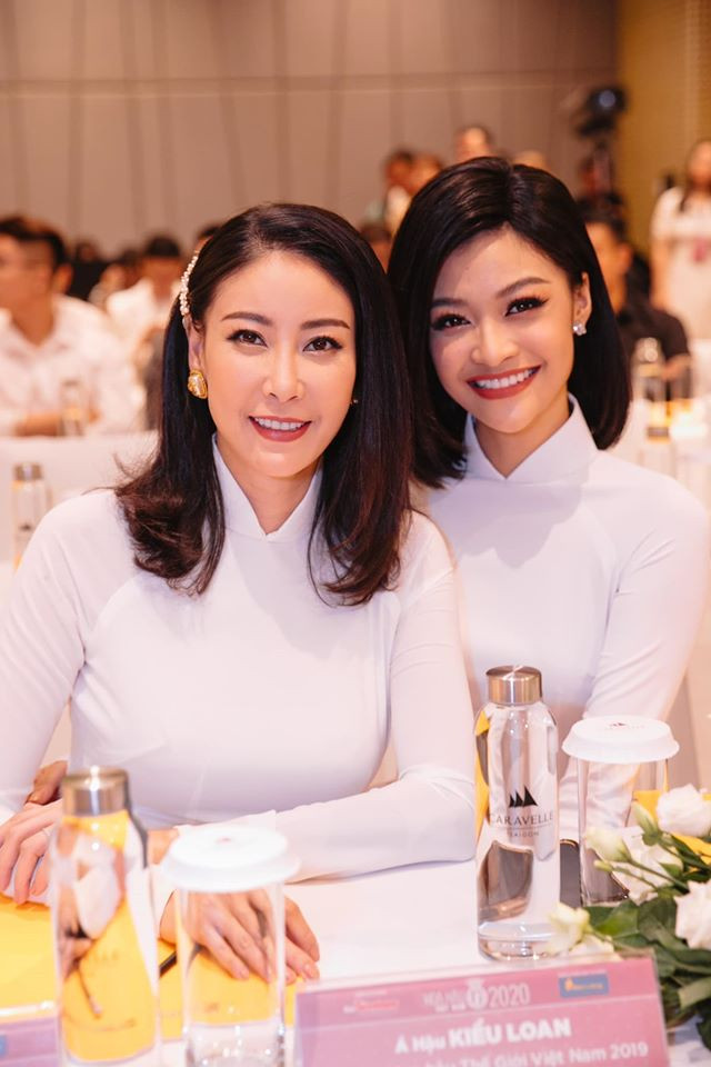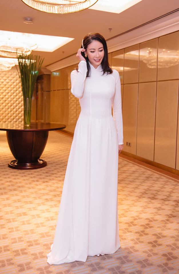 Hoa hậu Hà Kiều Anh xuất hiện thướt tha với tà áo dài trắng trong họp báo khởi động Hoa hậu Việt Nam 2020.